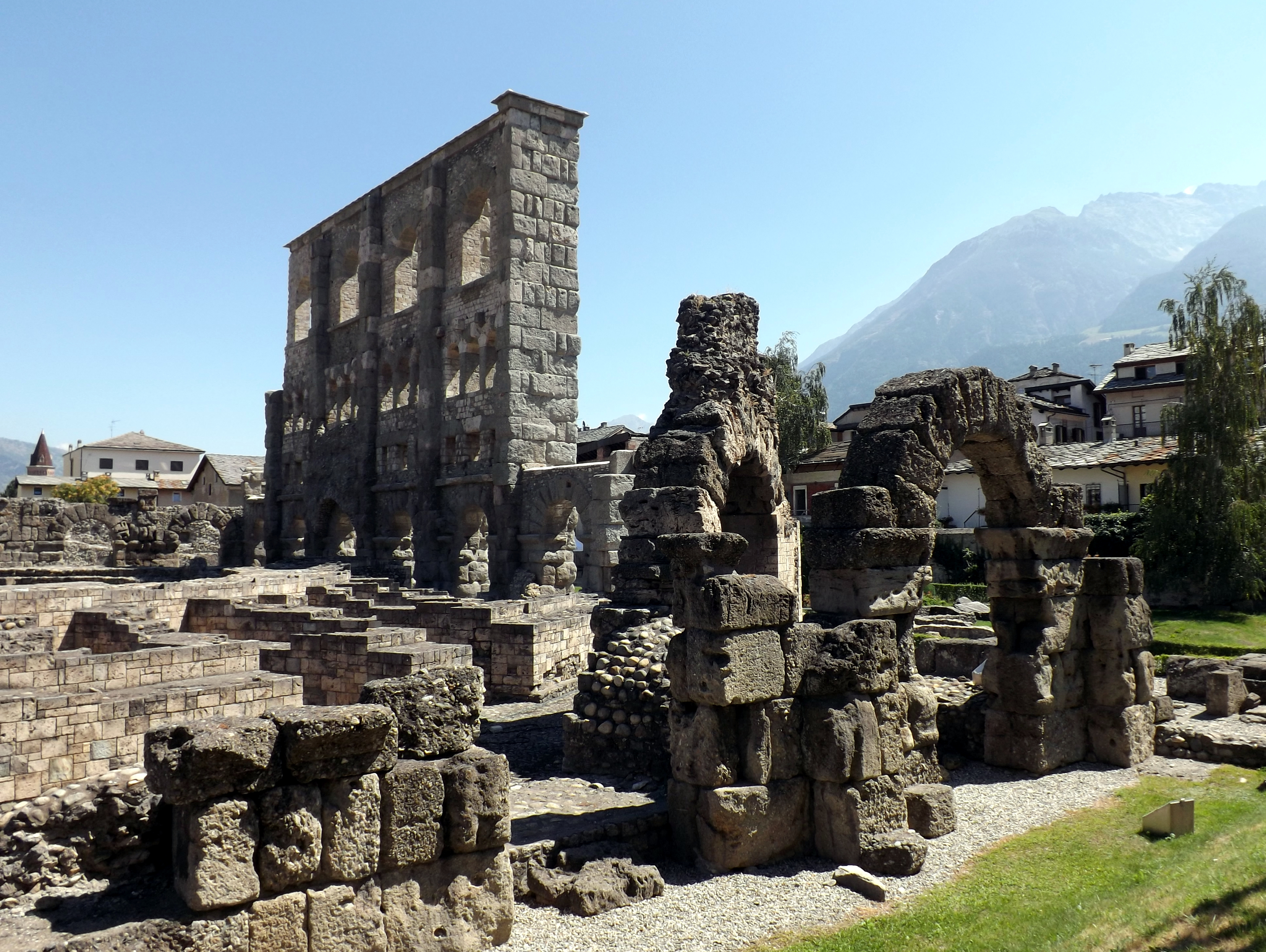 Mi sembra giusto dal patrimonio che gli antichi ci hanno regalato. E non è poco e mai scontato. Dato che l’Italia, lo sanno anche i nostri parenti, è furba ma è ricca e questo nessuno ce lo può togliere. Né i politicanti né i passanti. L’Italia, ora tanto triste e cara, non morirà mai perché noi giovani ridiamo. Hai capito viaggiatore? Noi minacciamo ridendo, urlando, strappandoci i vestiti perché nessuno ce la potrà mai togliere. E vai sul ponte a sventolare la bandiera. O meglio, vai sulla torre, alta e caparbia come credi di esser tu. La Torre del Lebbroso, la Torre dei Balivi, laTorre dei Signori e il Ponte Romano ti aspettano. E magari osserva da lì anche ilTeatro romano.