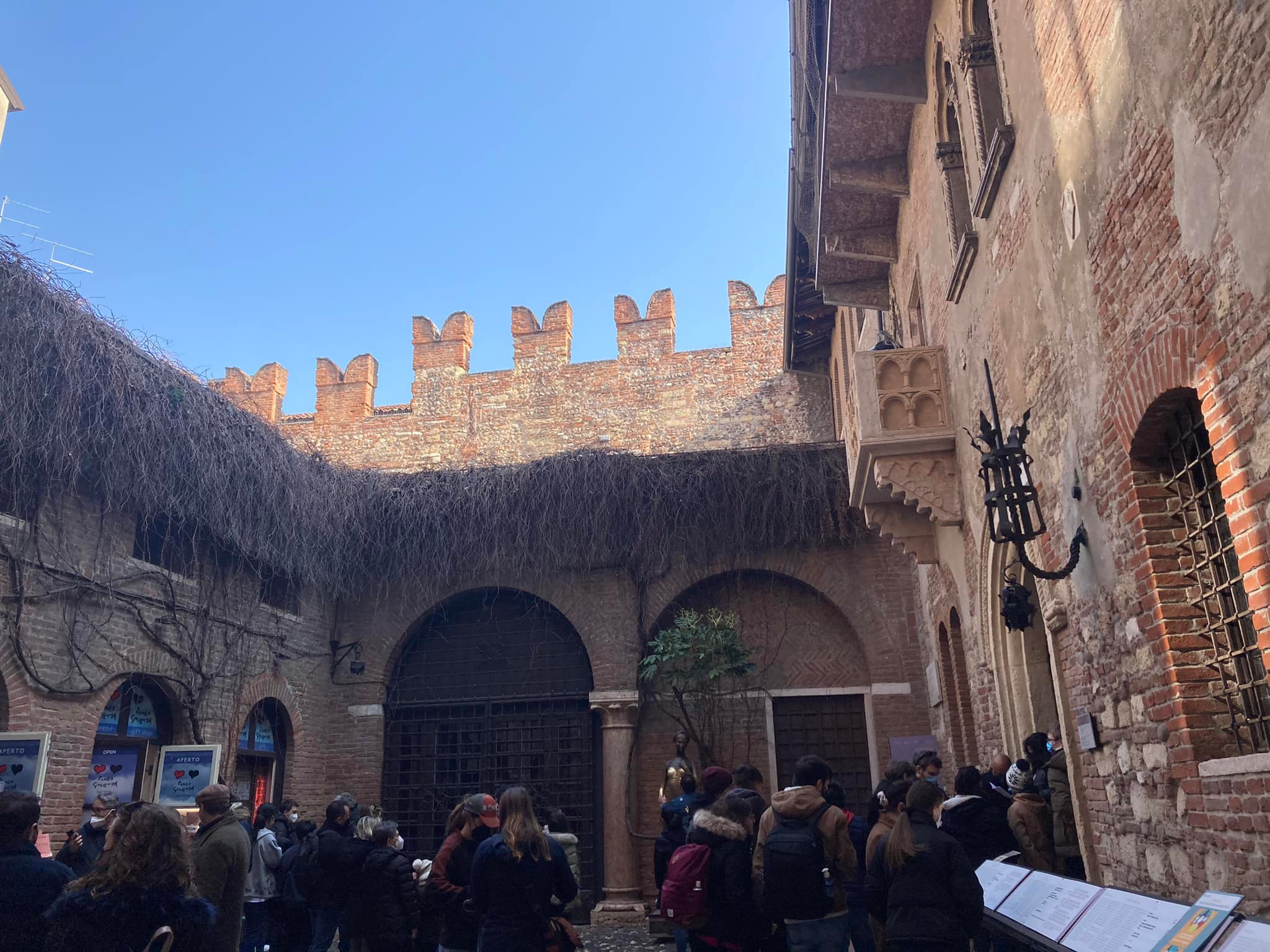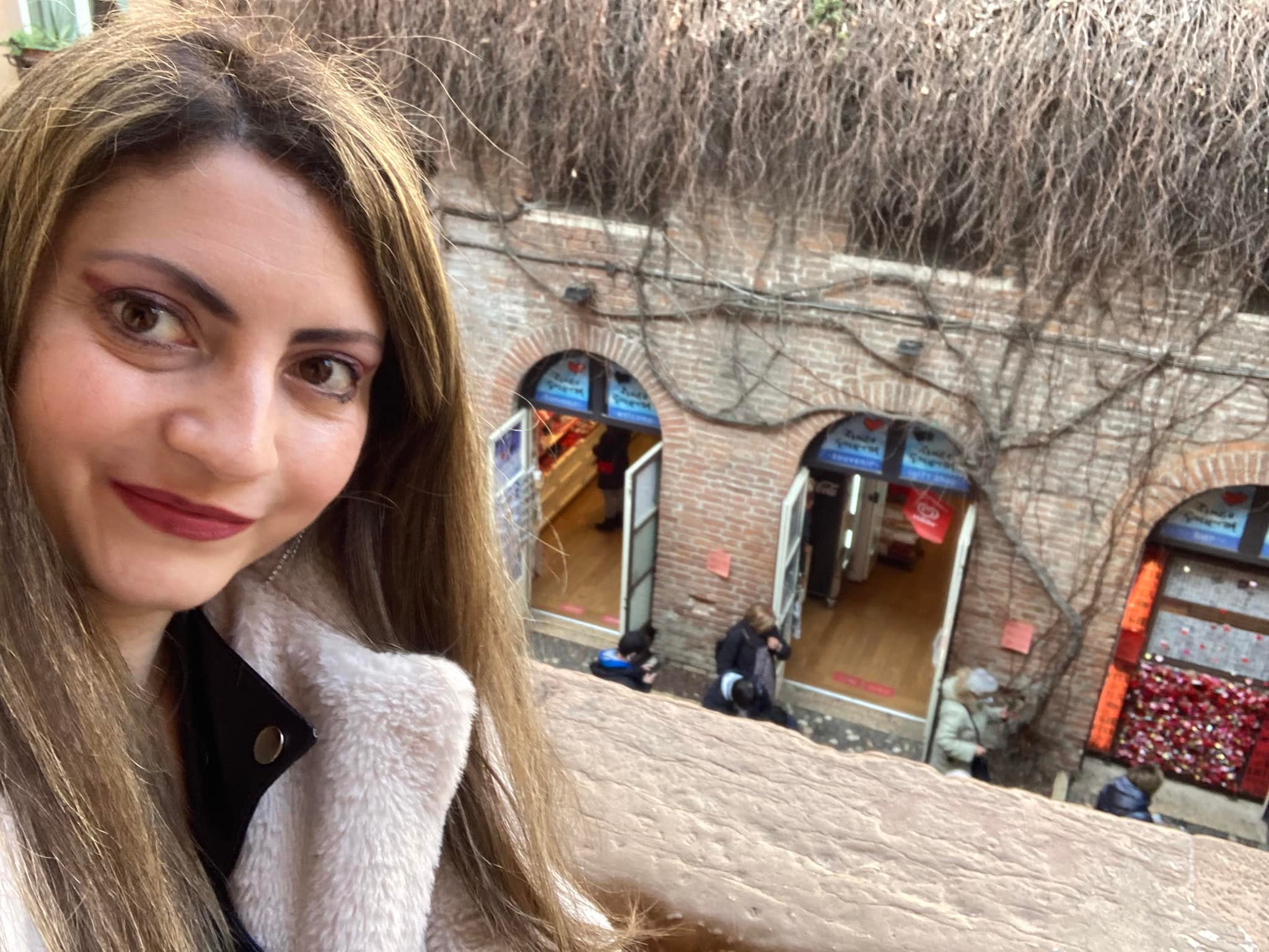 Come puoi vedere ci sono anche io, con il mio sorrisino, il mio make-up e il mio cappotto. Direi che con questo siamo al completo, o quasi. Infatti, devo assolutamente portarti a vedere la casa di Giulietta. Si trova in via Cappello 23, non molto distante da Piazza delle Erbe. All’entrata ci sono sempre tante persone che aspettano il loro turno per salire e un delizioso negozio di articoli stile “Romeo e Giulietta”. Io ho preso qualcosa per la mia famiglia e per i miei amici. Credo che anche tu troverai delle cose interessanti, se decidessi di andare. La vita, in fondo, è fatta di ricordi. Alcuni sono amari, ma altri dolci (quest’ultimi te li auguro con tutto il cuore).