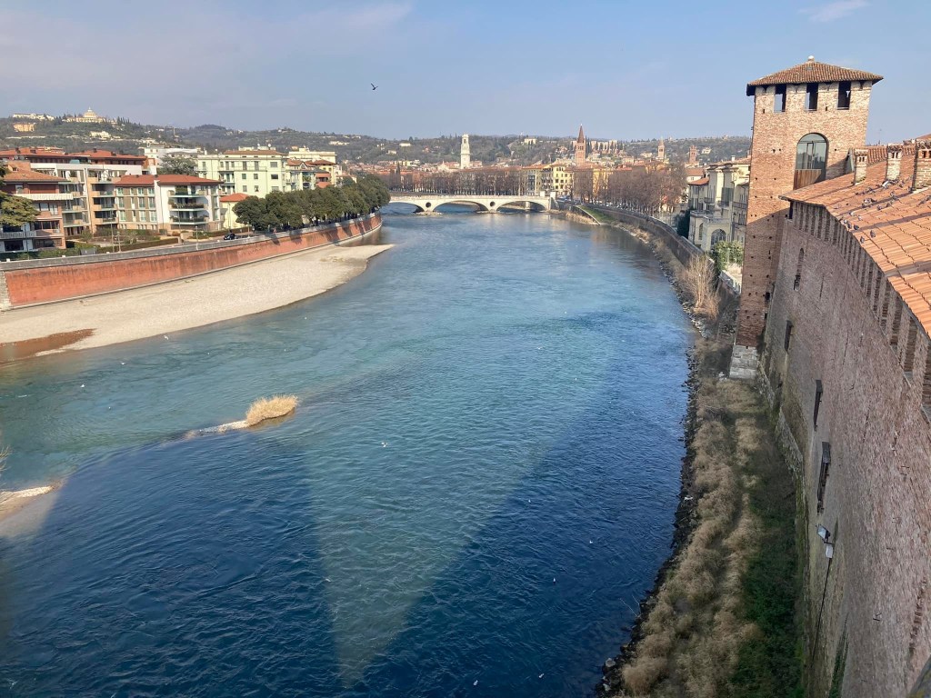 Passiamo a qualcosa di superbo… Scusami, ma quando vedo laghi, fiumi, mari, oceani, non capisco più nulla ed è proprio in questi momenti che invidio i gabbiani, che possono volare e vedere dall’alto queste meraviglie. Sicuramente con un dettaglio diverso, sicuramente con un occhio diverso. Sinceramente credo che i Ponti di Verona, come il Ponte di Castelvecchio, siano la parte più bella e importante della città. Fare jogging lungo la sponda del fiume, ascoltare musica o leggere un buon libro ammirando il panorama, fa star bene; anzi credo proprio che migliori la giornata di ognuno. Se magari qualcosa non è andato come speravamo, che sia una storia d’amore, un esame, un voto, potremmo sederci lungo la sponda del fiume e riflettere con calma sul perché. Ovviamente questa è soltanto un’idea. Si potrebbe farlo anche per piacere e svago. Think positive, my dear! Stay tuned! Sintonizzati con i miei pensieri, con la mia mente, con il mio modo di essere e vivi le mie esperienze come se fossero le tue. Ah dimenticavo di dirti che dovresti vedere il panorama dal Museo di Castelvecchio. Ti posso assicurare che è spettacolare. Si trova in Corso Castelvecchio 2.